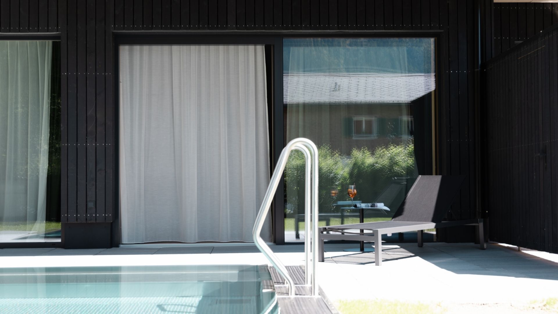 Die Schafgemach Pool Spa Suite ist AMRAIs Ort zum Wohnfühlen für zwei Personen. Hier bleiben keine Wünsche offen. Ausgestattet mit einem privaten 9-Meter-Außenpool, Außensauna, privater Whirlwanne, Dampfdusche, Badewanne, Kamin, flauschigem Doppelbett, Deluxe-Kitchenette, Terrasse und Garten bietet diese Suite mit 65 m² den perfekten Rahmen für den besonderen Anlass.